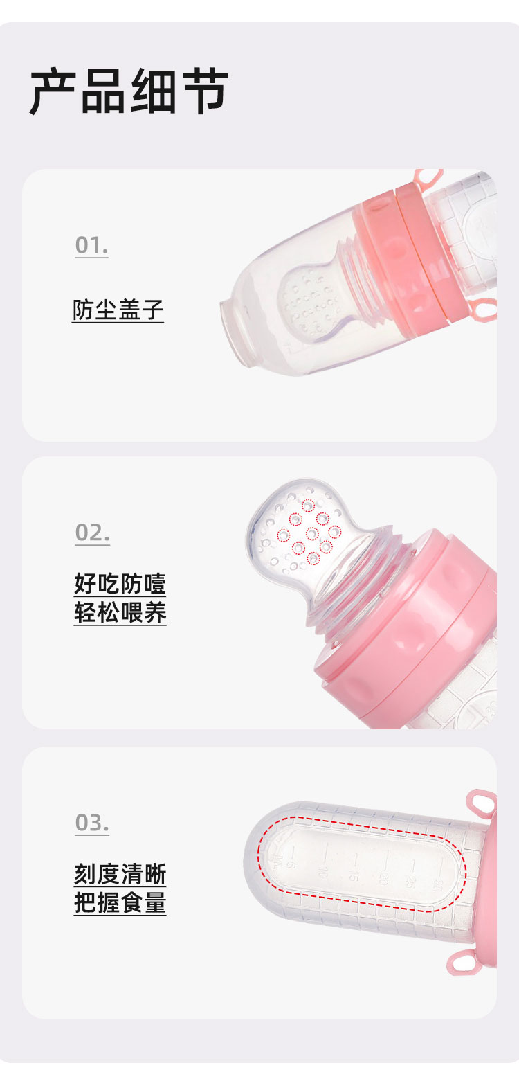 采用頂級食品級矽膠材質,無毒無味,安全環保,通過嚴格的質量檢測,確保每一口食物都純淨無害。矽膠的柔軟觸感,如同媽媽的肌膚般溫柔,即使寶寶不小心咬到,也能有效避免傷害,給予寶寶最貼心的保護。