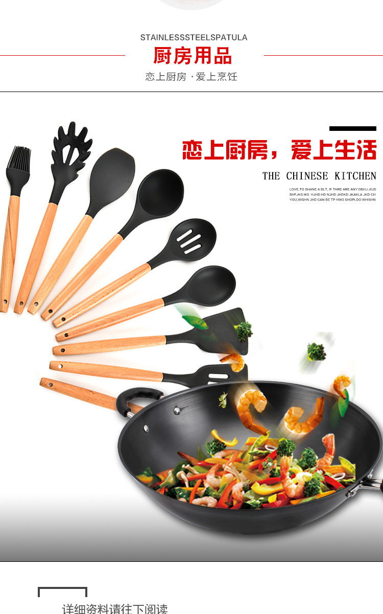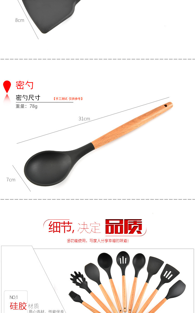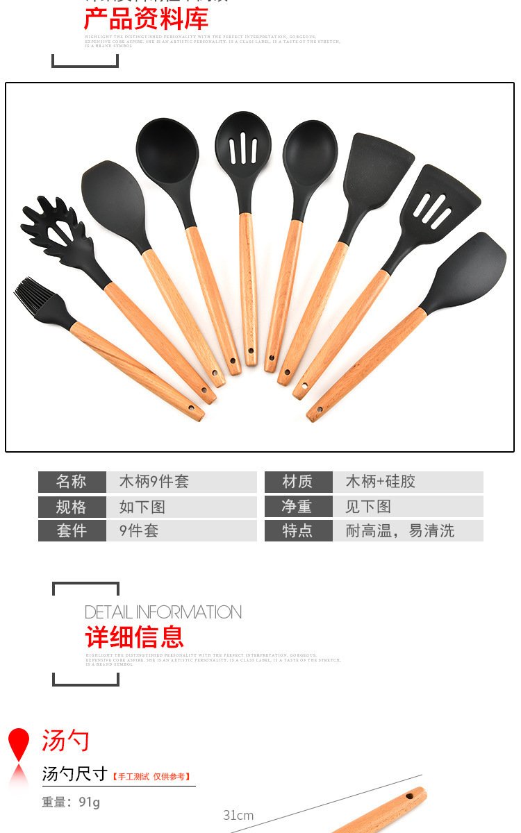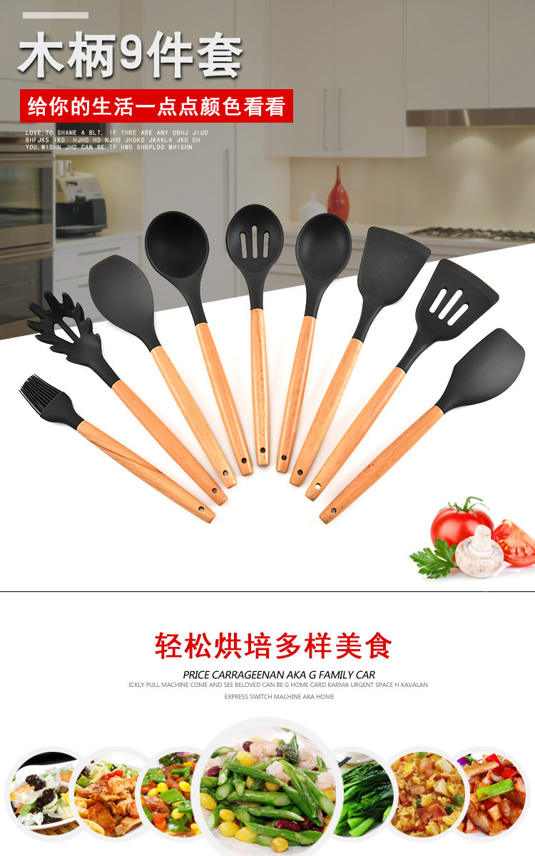• 名稱:木柄9件套矽膠廚具,矽膠廚具九件套木柄