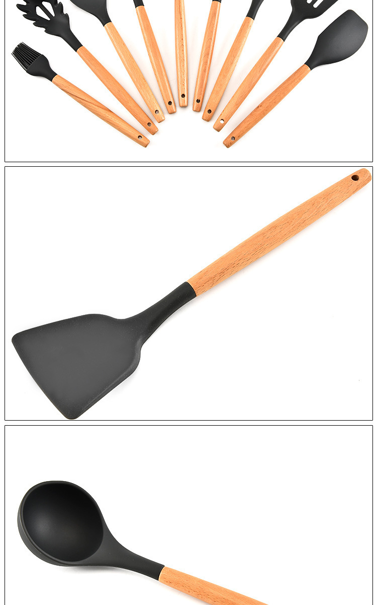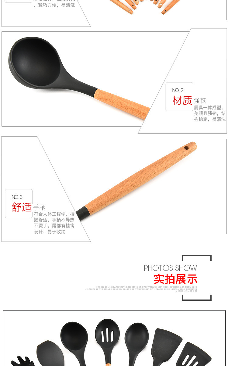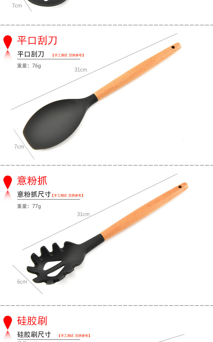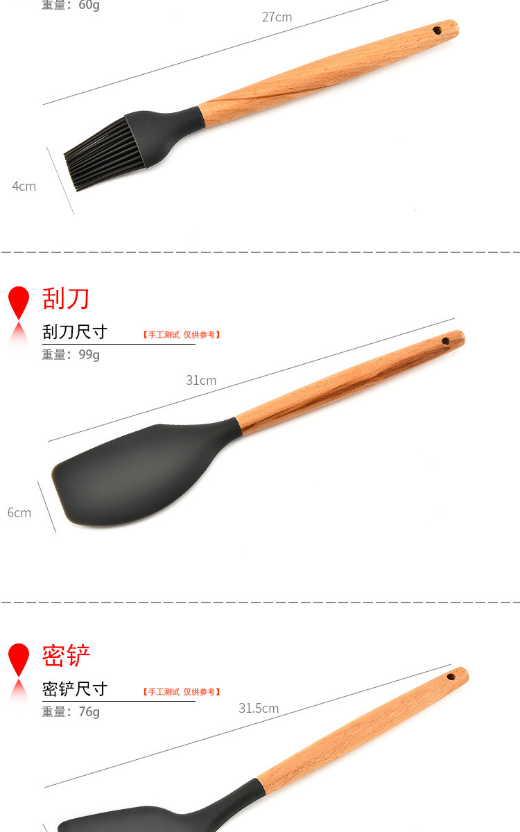• 名稱:木柄9件套矽膠廚具,矽膠廚具九件套木柄