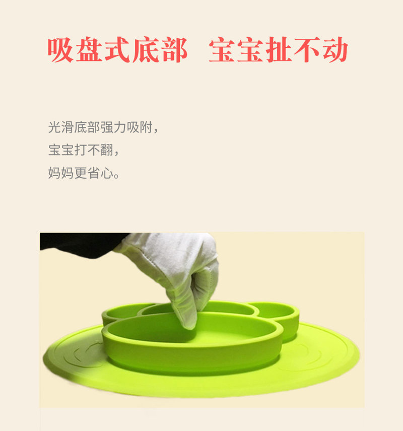 3、吸盤式底部,寶寶扯不動,光滑底部強力吸附,寶寶打不翻,媽媽更省心