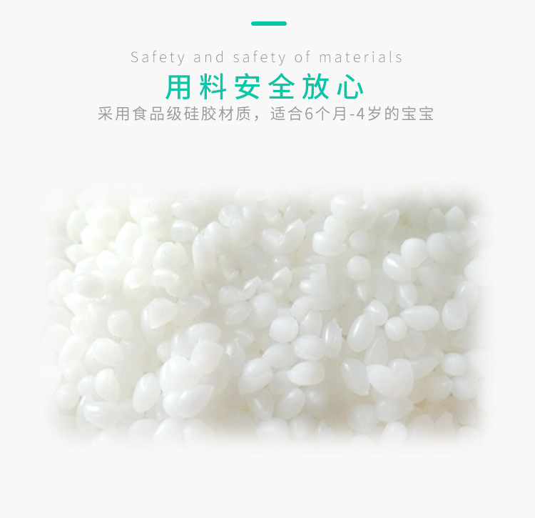 4、用料安全放心,采用食品級矽膠材質,適合6個月-4歲的寶寶