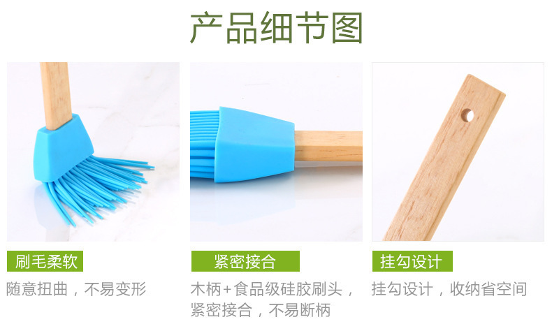 2、緊密結合,木柄+食品級矽膠刷頭,緊密結合,不易斷柄