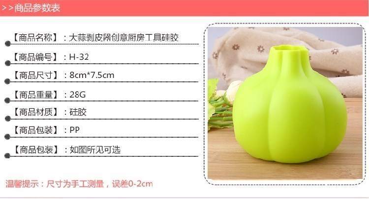 名稱:矽膠剝蒜器尺寸:9*8cm克重:28g材質:食品級矽膠矽膠耐溫範圍:-40-230°包裝:單隻裝開口PP袋