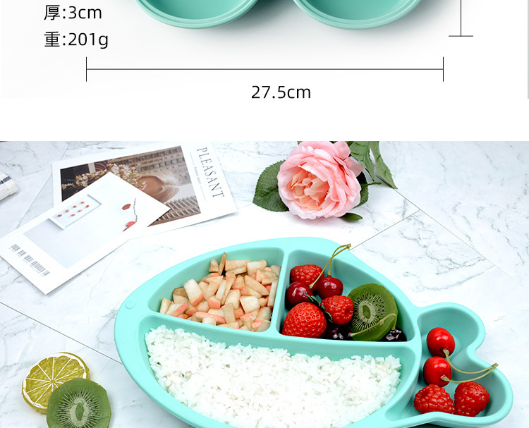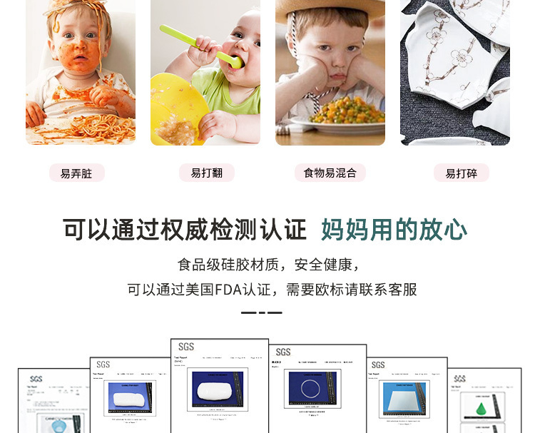 4、細膩從裏到外,精選食品級矽膠原料,加厚設計,及時寶寶不小心碰撞也不會打翻,防止食物浪費