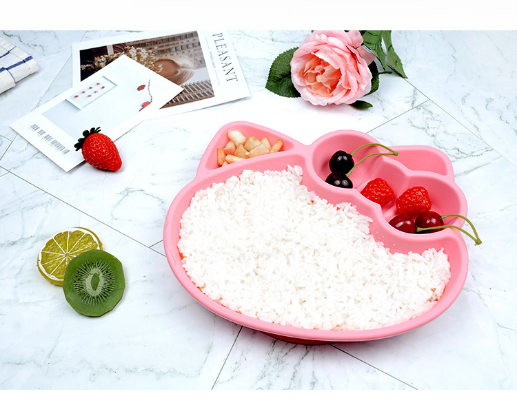 產品名稱:小貓矽膠餐盤 食品級兒童kt貓分格吸盤防打翻餐盤 工廠現模顏色多