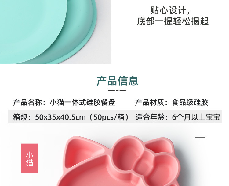 產品名稱:小貓矽膠餐盤 食品級兒童kt貓分格吸盤防打翻餐盤 工廠現模顏色多